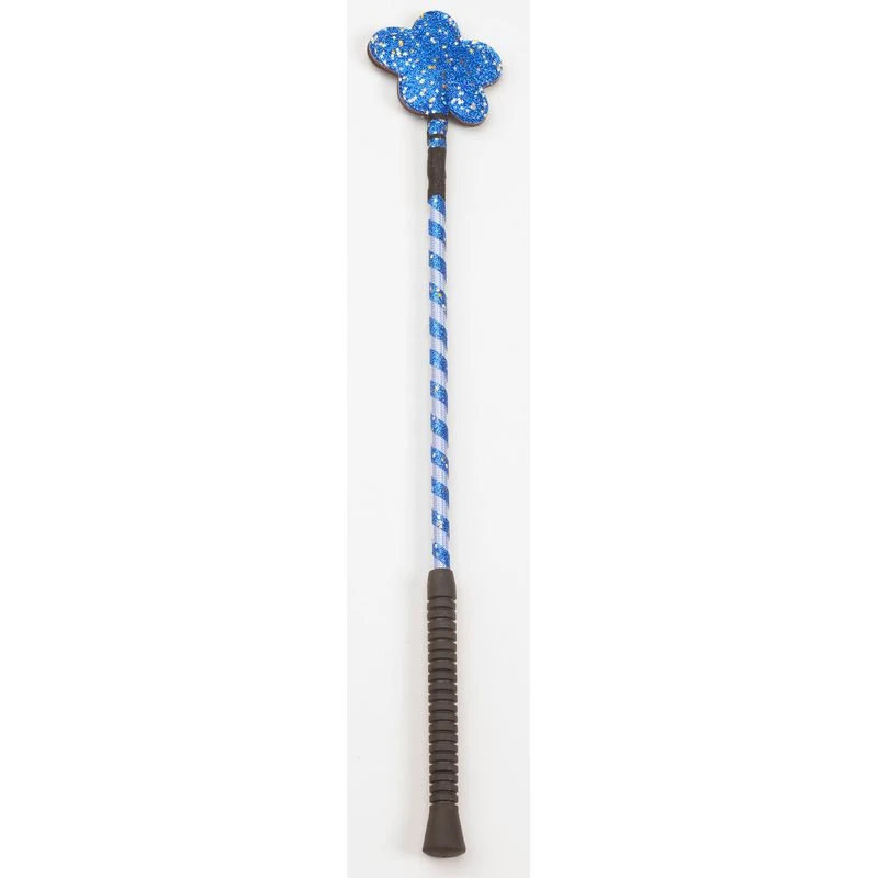 Rubber grip handle with glitter-striped shaft, and a fun flower-shaped glitter clapper.