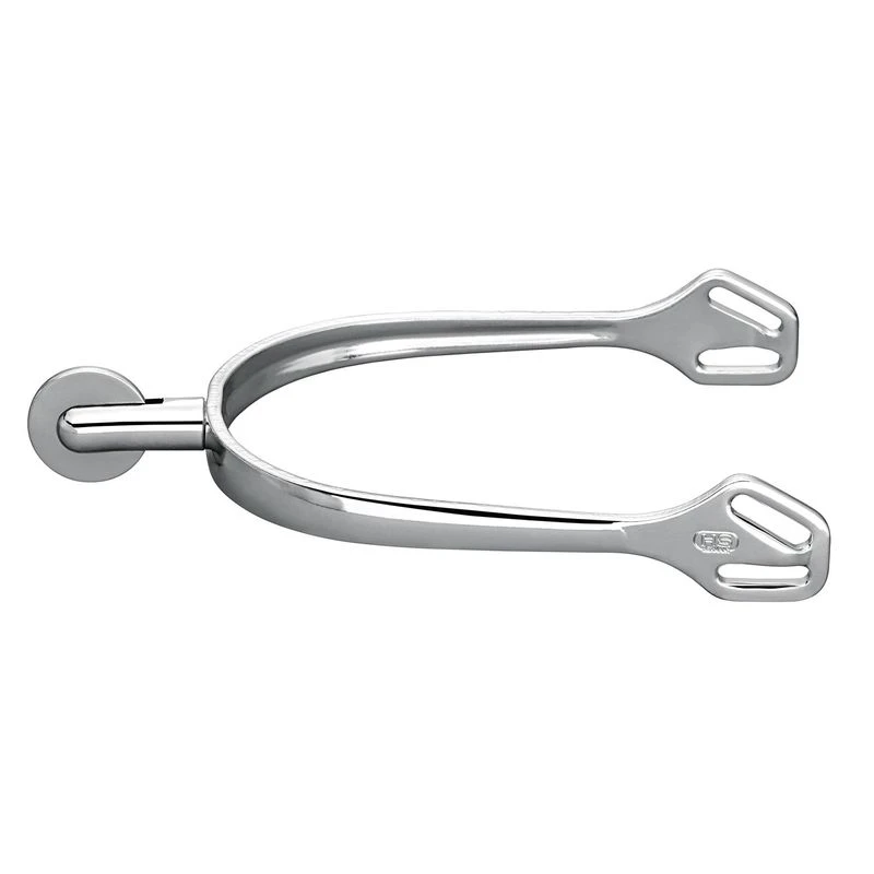 This spur features a 30mm rounded end neck with a large smooth rowel. It has unisex sizing that will fit both men and women.