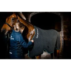 The Horseware Fly Rug Liner is made with a waterproof, polyester outer, an absorbent middle layer to wick away sweat, and a shine enhancing polyester lining. This lightweight liner protects your horse while minimizing sweating. Features include easy to use fasteners for simple attachment, a shallow cut in lightweight fabric to prevent overheating, and a single front closure. Compatible with the Rambo Hoody no-fly zone, Rambo Fly Buster, Amigo Bug Buster, Rambo Hoody, Rambo Protector, and the Amigo Bug Rug.