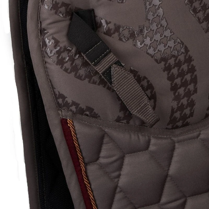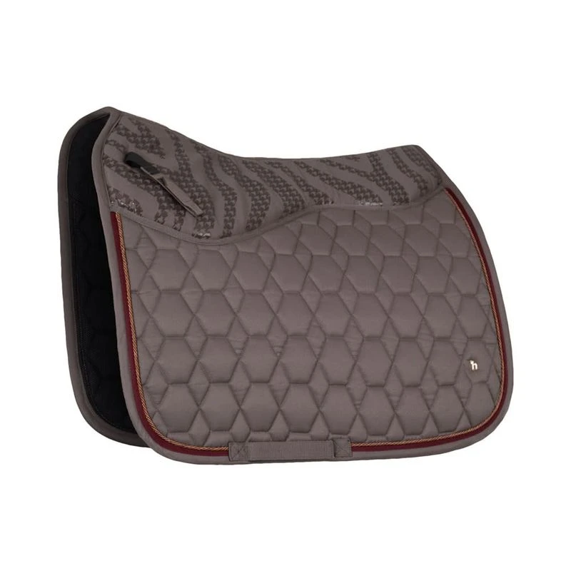 The anatomically cut Horze Kenya saddle pad is equipped with a silicone detail to prevent the saddle from slipping. Light padding beneath the saddle adds comfort. Moisture wicking lining keeps your horse’s back dry. Three rows of pipinig and the timeless design add a classic look. Metallic details make for an elegant look. Pair this saddle pad with the rest of our Horze Kenya range for a full outfit.