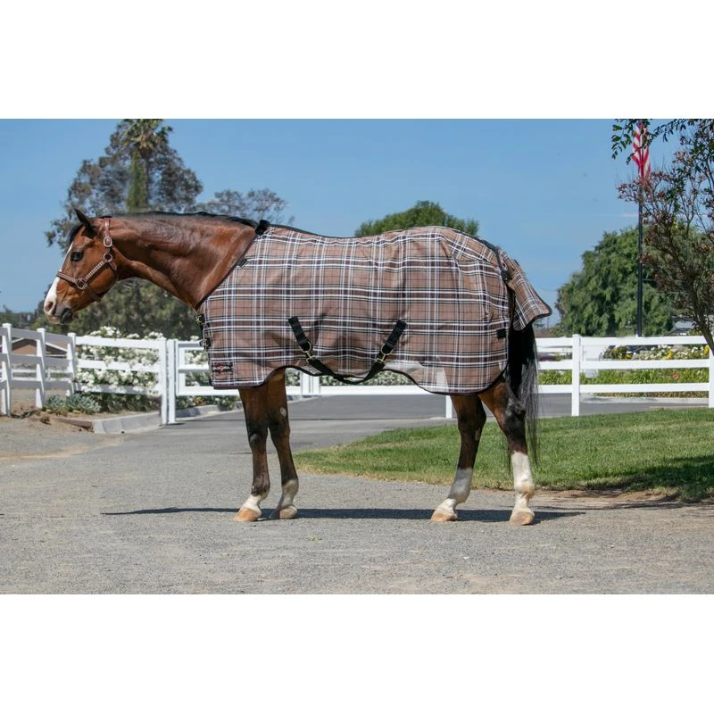 Designed to fit a wider range of horse types, from narrow and lanky to broad and stocky, it is made of ultra-durable Textilene, a 1000 x 2000 denier mesh that provides 73% UV protection, 78% air permeability, fly and insect protection, and fire resistance, while not absorbing heat from the sun or your horse. The weave actually helps shorten grooming times by not only keeping dirt and debris from the coat, but by actually working the coat as they move, bringing out the natural oils and removing loose hair. The UV protection helps keep your horse’s coat from bleaching out and prevents sunburns. Air permeability and non-heat absorbing properties ensure your horse stays cool and comfortable in the hottest weather. In the event of a fire, this material also resists burning, and will stick to itself, not your horse.