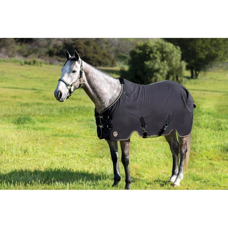 This sheet offers a great option for mild weather. This sheet is made in Kensington’s SureFit Cut with features including clip front closures, a lined chest, padded wither for mane protection, detachable elastic leg straps, 2-inch criss cross belly straps, and a tail cover. Machine washable for easy care.