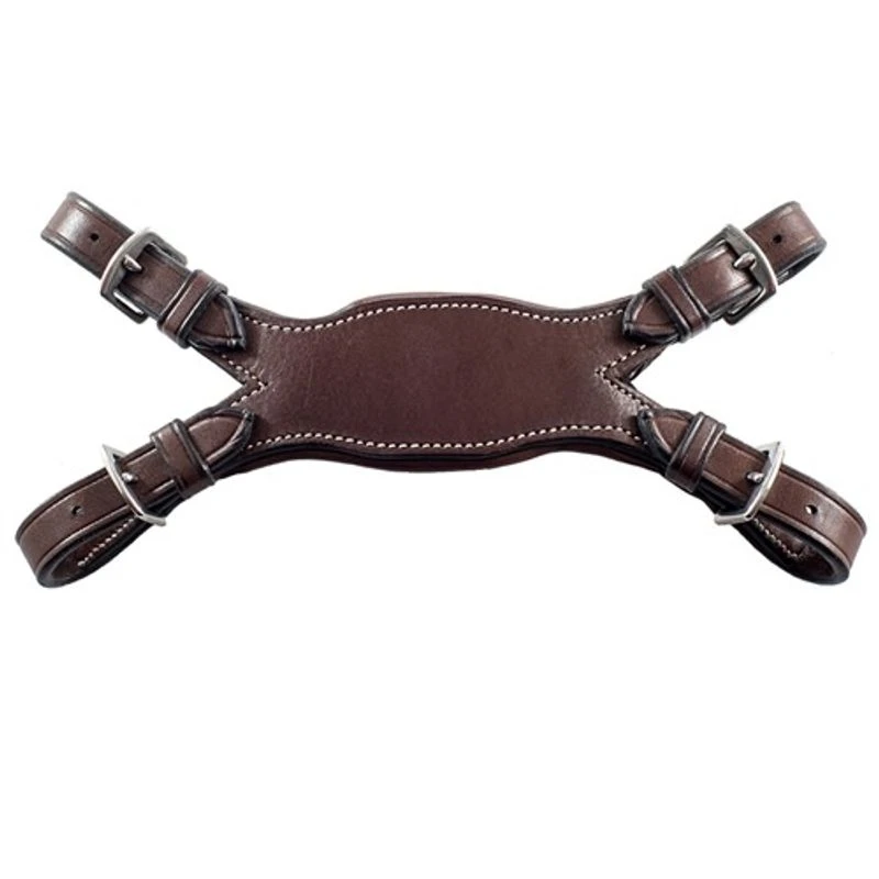 An innovative design that attaches to the fork of a running martingale converting it to a bib martingale.