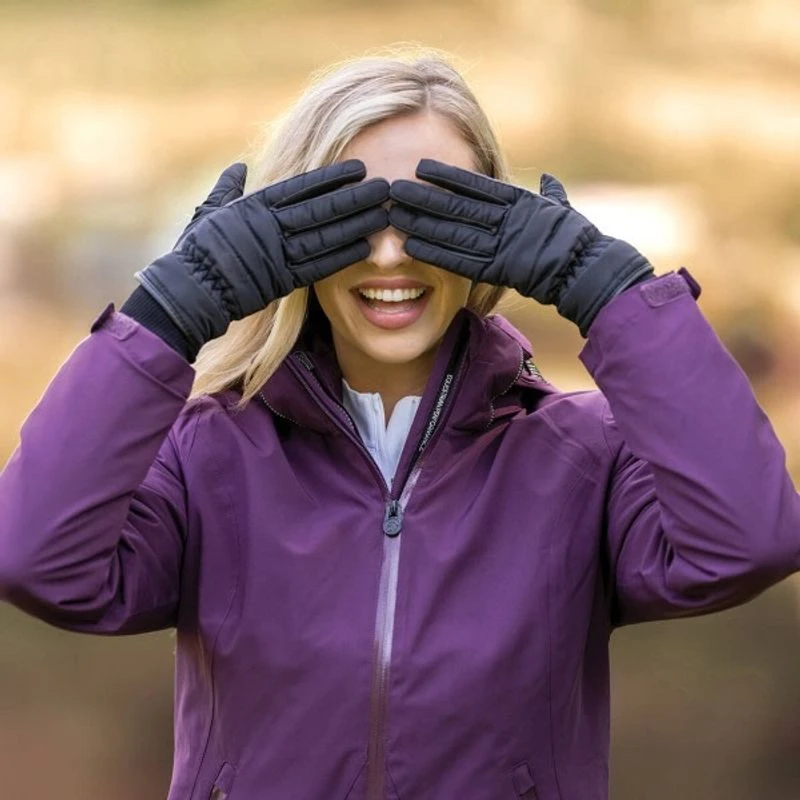 Elegant quilted satin back winter riding gloves with Thinsulate insulation and grippy digital Serino palms and finger reinforcements. Knitted cuff tucks underneath your riding jacket sleeve to keep out the cold.