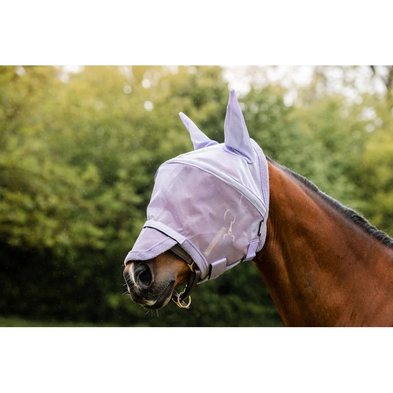 This mask is made from extremely durable textilene body, soft polyester material on the ears and comfortable fleece edging. Improved design for optimum eye protection, detachable nose protection, large fitting soft ears and adjustable closure with elastic to allow the horse to graze comfortably.