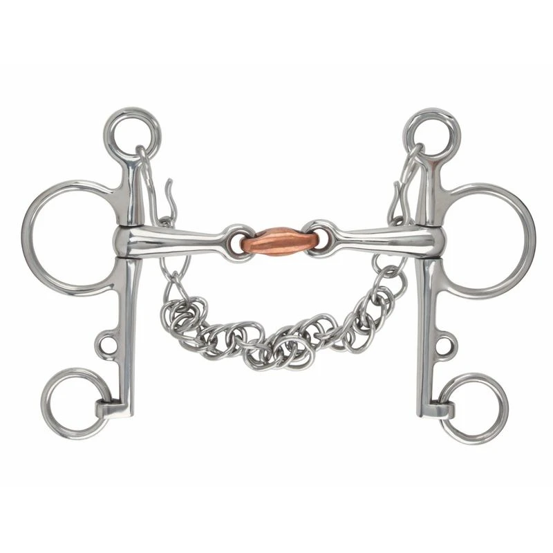 A more severe bit with additional control, this bit puts pressure on the bars, the poll, and the chin groove. Can be used with a curb rein or an attachment. The stainless steel mouthpiece is durable, easy to clean, tasteless, and does not rust.
