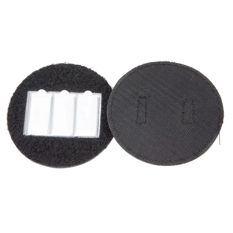 This round holder comes with three sets of number 0-9. It has two touchtape closures on the back. Diameter: 4″