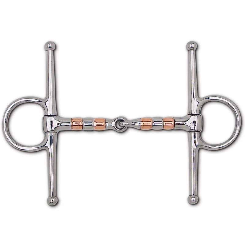 The full cheek keeps the bit from sliding though the mouth on turns, while the single joint creates a nutcracker action on the soft pallet. The rollers can keep a young horse busy and they generally like the taste of the copper.