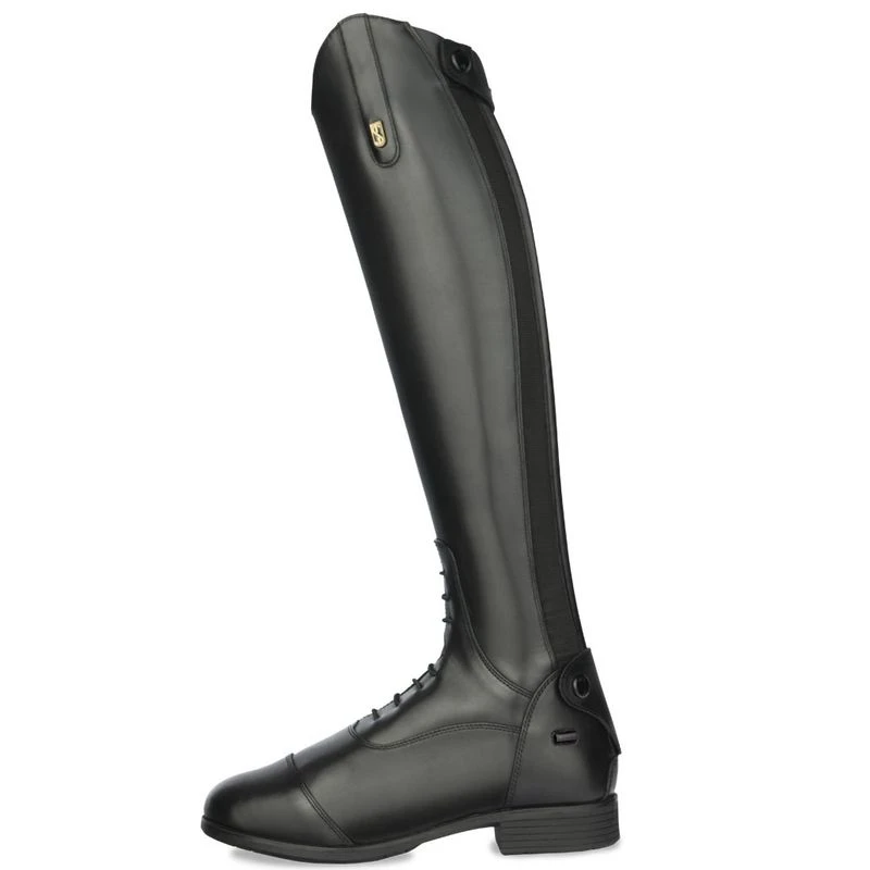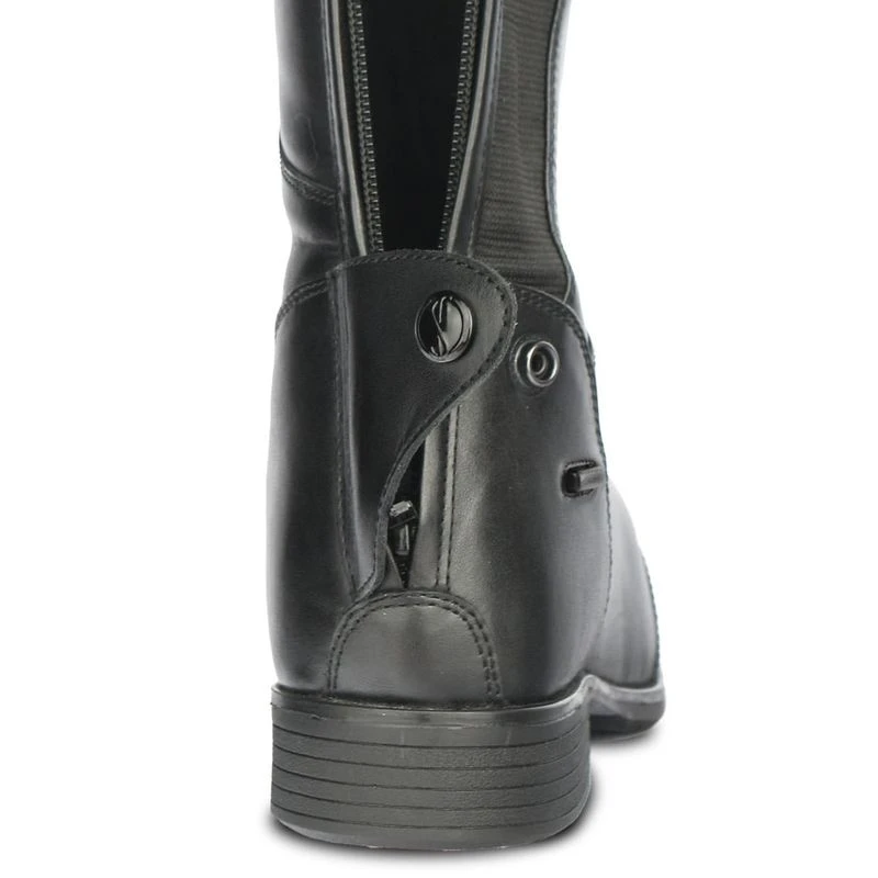 A combination of premium leather, high tensile stretch panels and smart detailing ensure these boots will fit and perform perfectly. The Donatello S Junior has advanced anatomical patterning and is fitted with a high tensile stretch panel, robust rear zipper and top closure tab guaranteeing a secure but easy and comfortable fit. Mounted on an evolutionary cushioned rubber sole which combines a classic profile with the latest in sole technology, this coupled with a coolmax lined cushioned footbed ensures advanced stirrup grip and ankle flexibility while reducing foot fatigue. Lined with our exclusive Airtech moisture management fabric. The Donatello S Junior is ideal as a starter boot, perfect for competition or schooling.