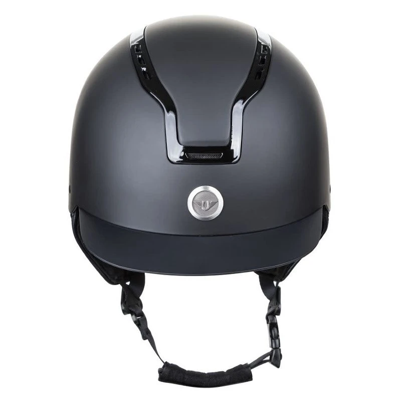 The TuffRider Essential helmet features a gloss ventilated trim on a matte finish for a modern style.