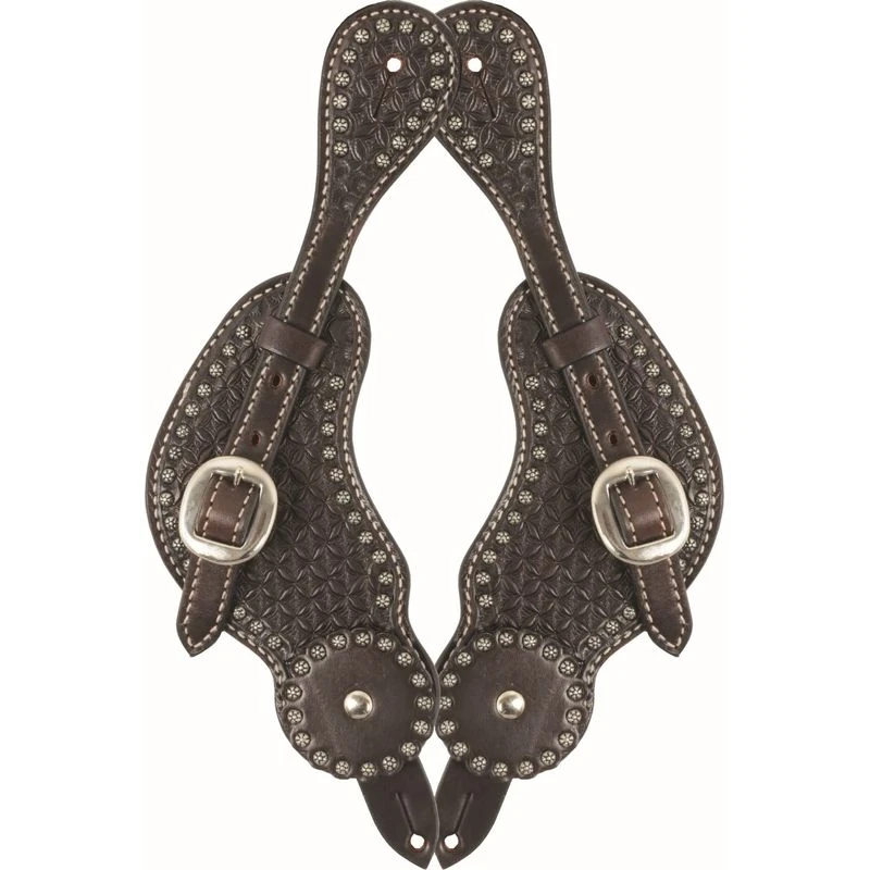 Made with rugged style, the Western Rawhide Spur Straps with Tooling & Sun Spots offers a beautiful design with long lasting quality.